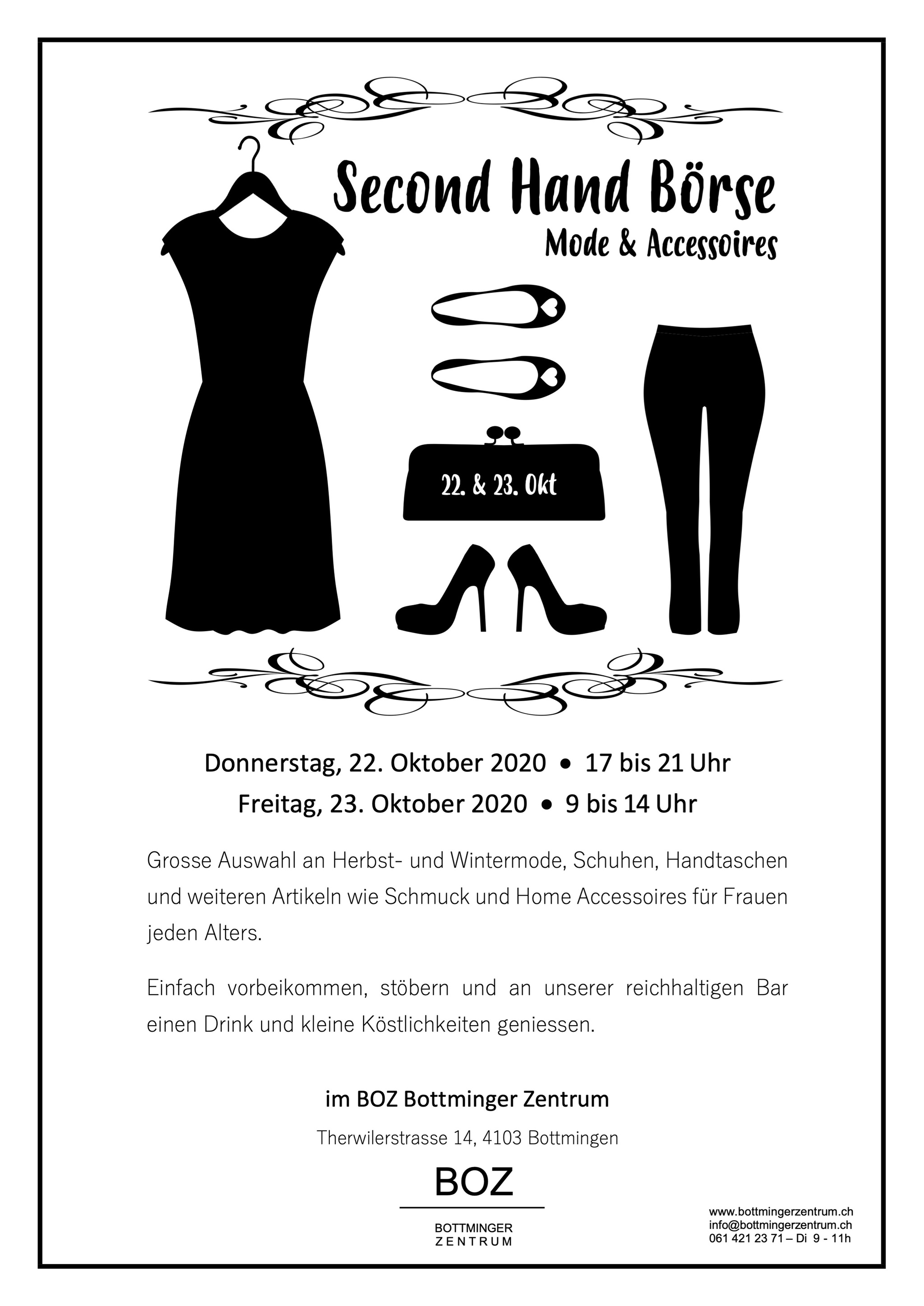 23.10.2020, 09:00 Uhr bis 23.10.2020, 14:00 Uhr, BOZ Bottmingerzentrum, Therwilerstrasse 14, 4103 Bottmingen
